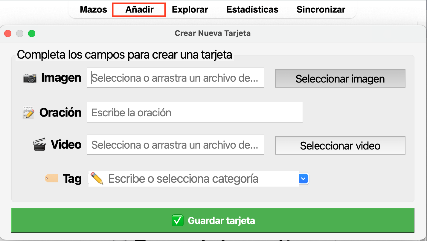 Para crear sus propias oraciones, haga clic en “Añadir” y siga las instrucciones.